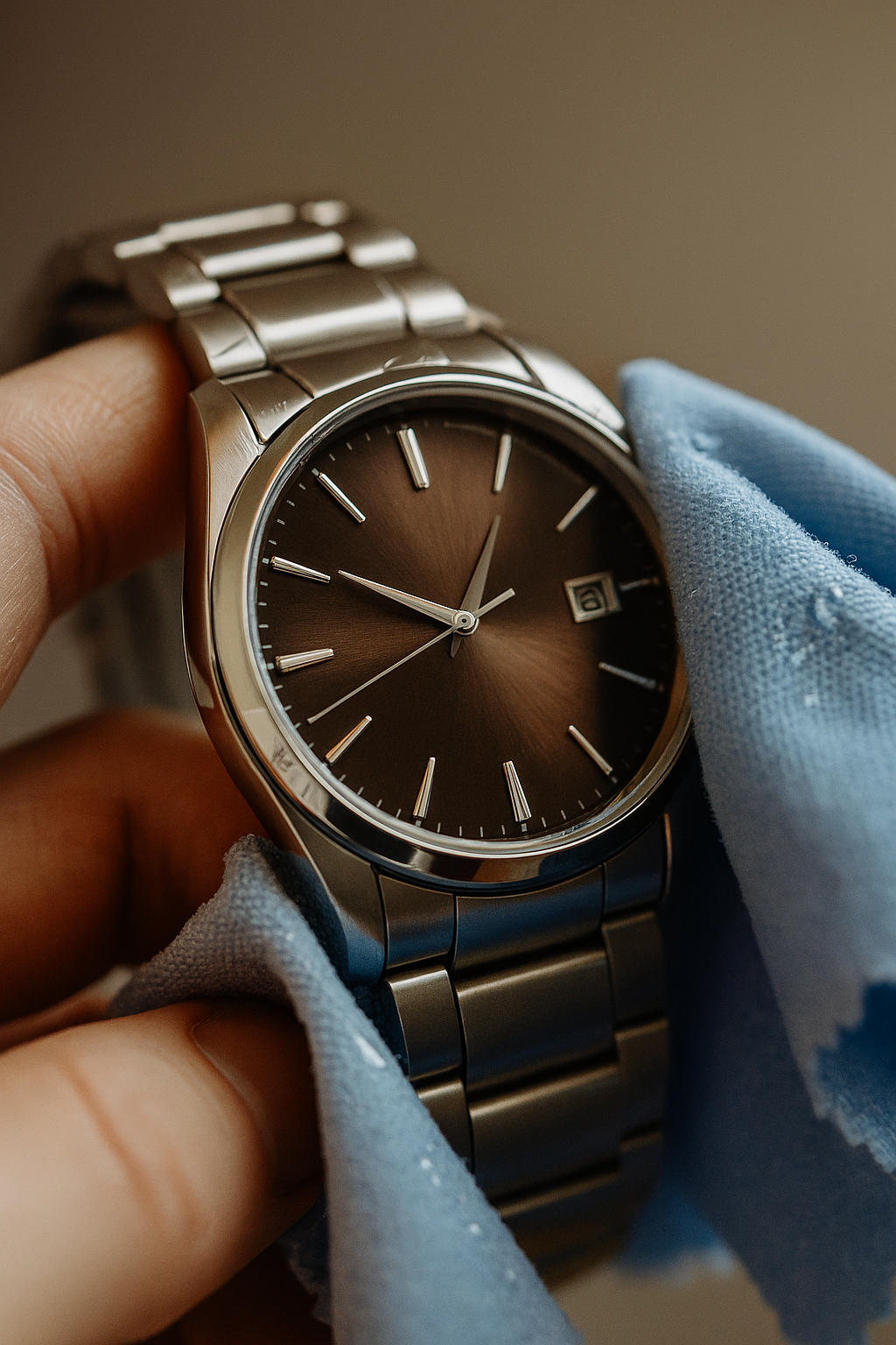 Het schoonmaken van de buitenzijde van je horloge is mogelijk. Gebruik hiervoor een zachte, licht vochtige microvezeldoek. Is je horloge waterdicht? Dan mag het iets natter. Voor vuil tussen de bandpoten en schakels kun je een zachte tandenborstel gebruiken.