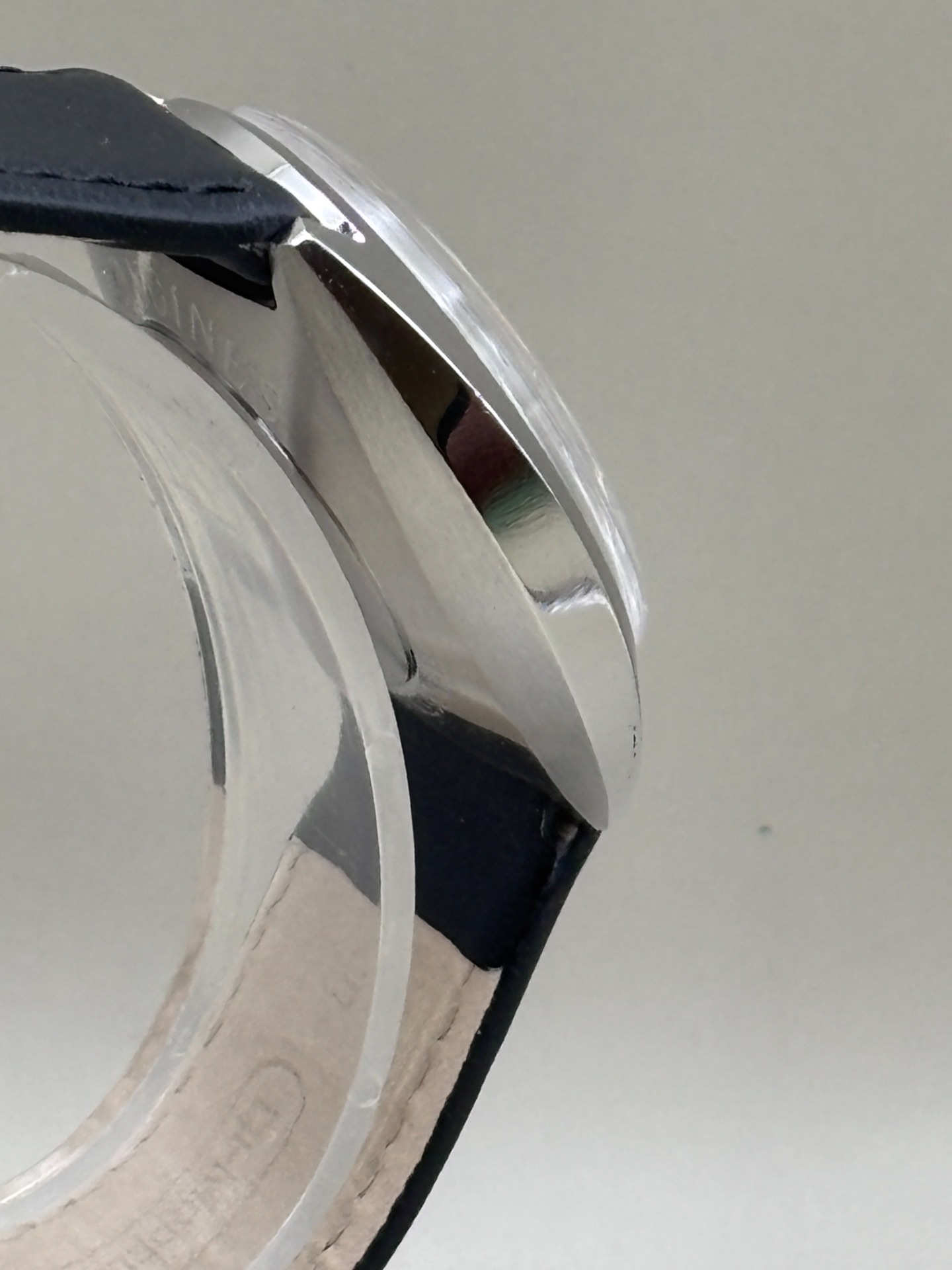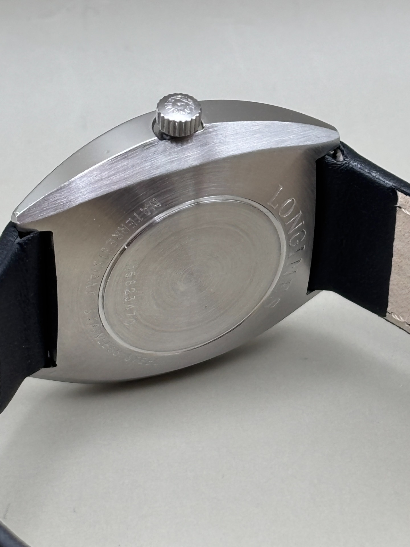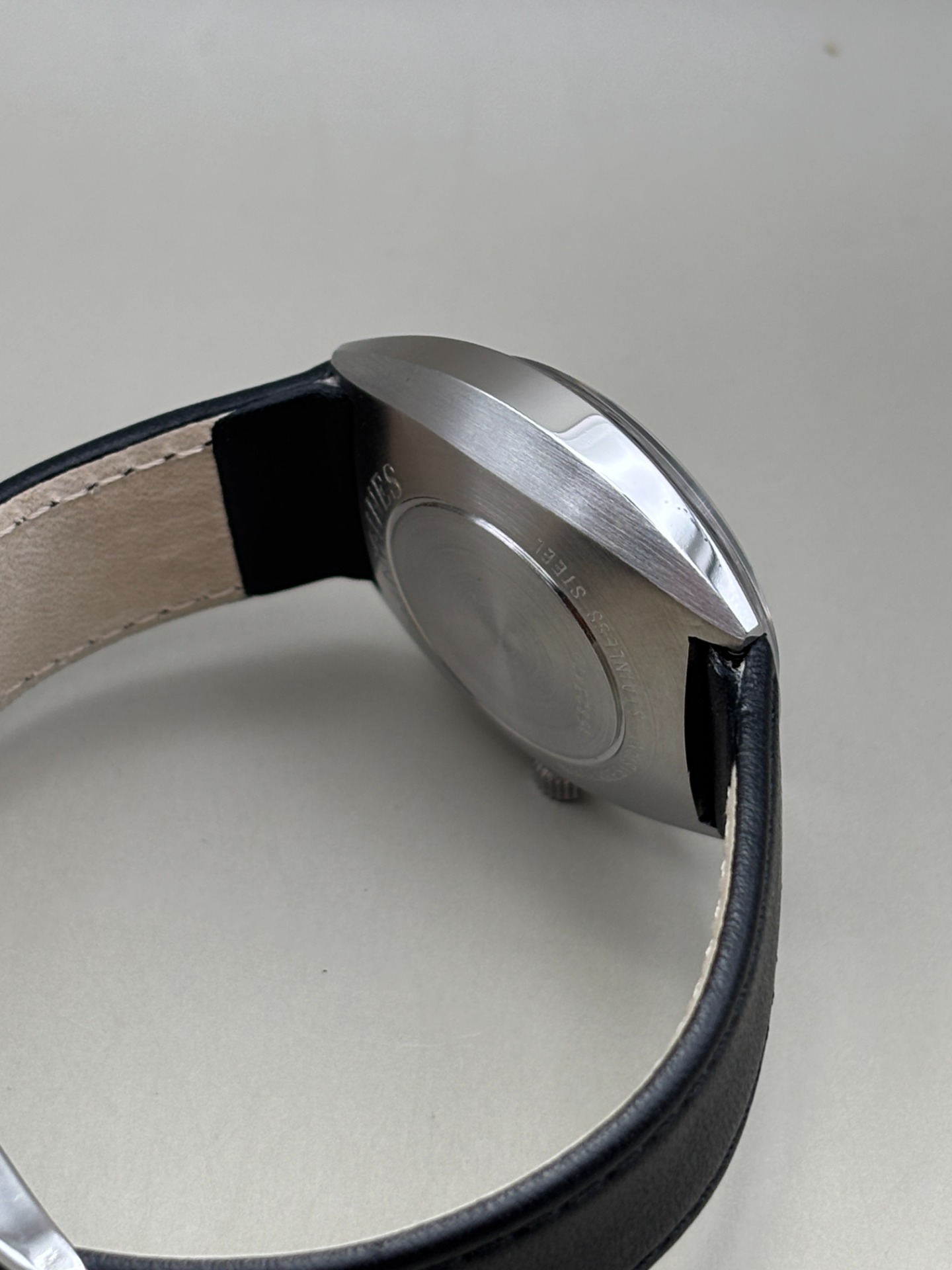 De wijzers zijn vervangen, er is een nieuw glaasje geplaatst, pakking in de kroon is vervangen en het horloge is voorzien van een nieuwe kalfslederen band van goede kwaliteit.