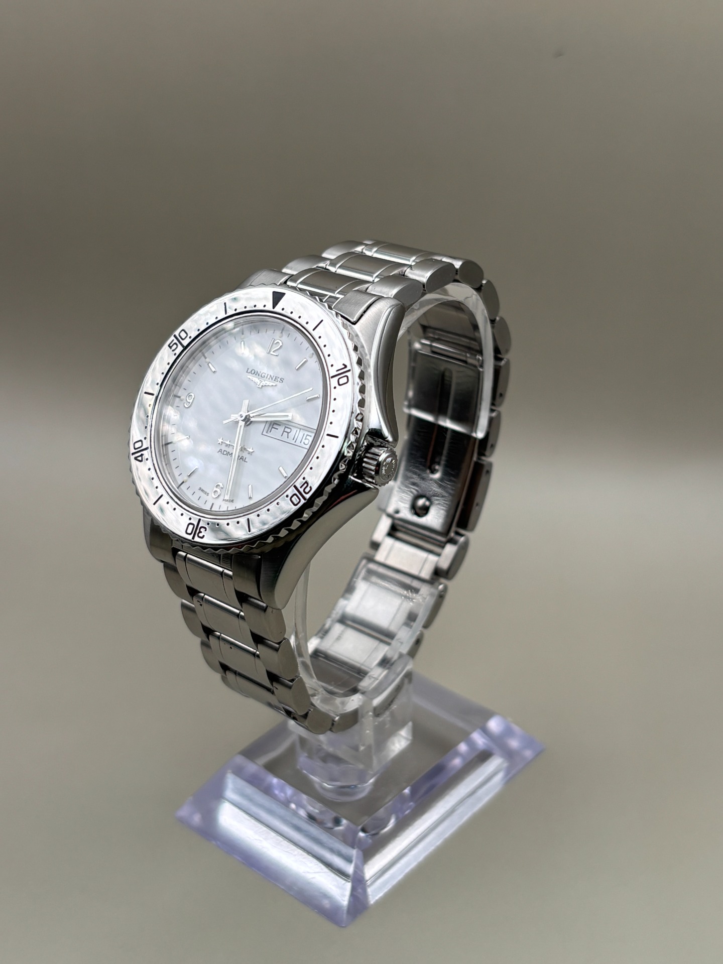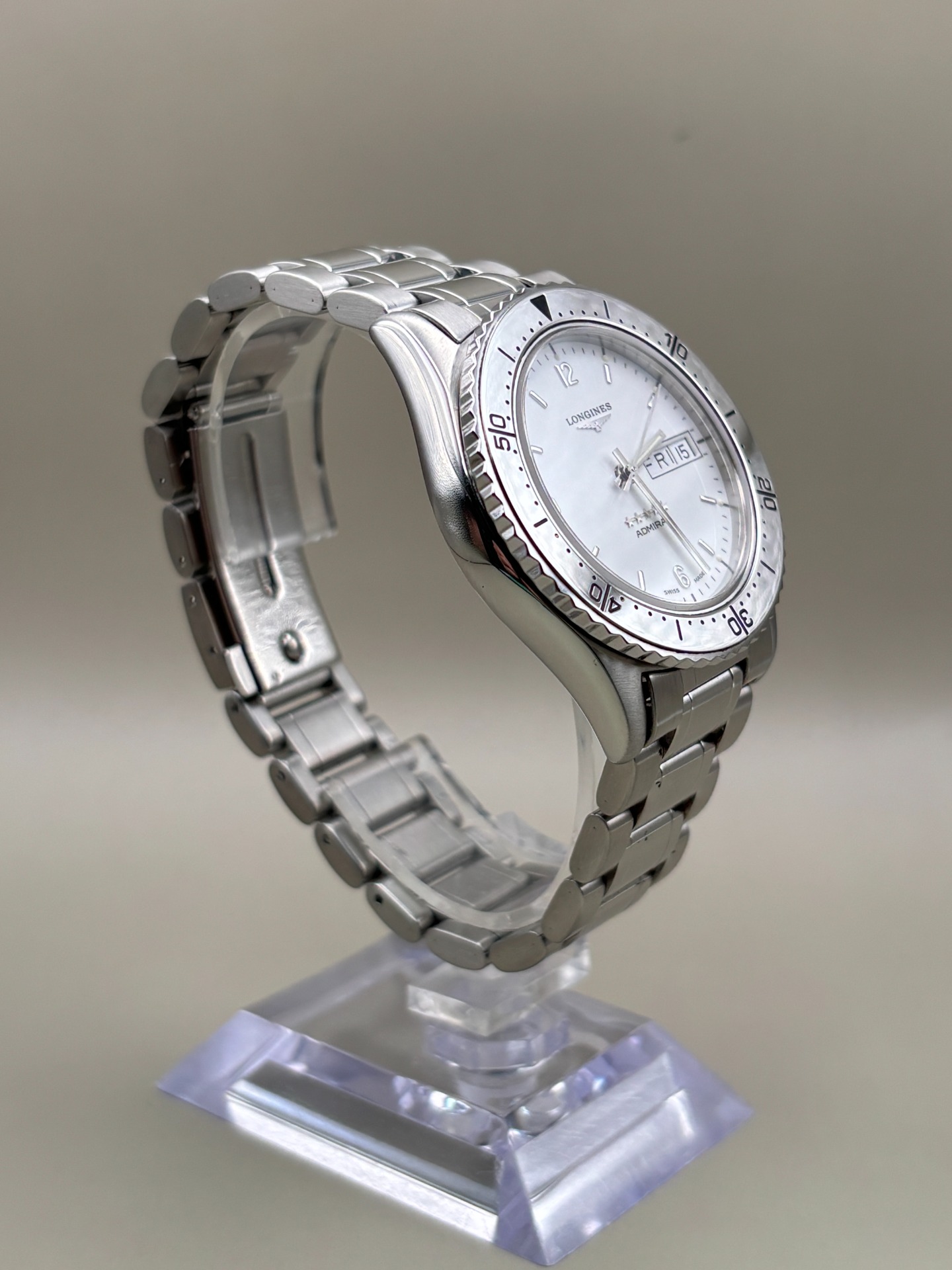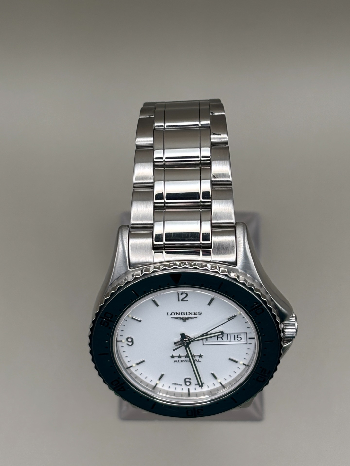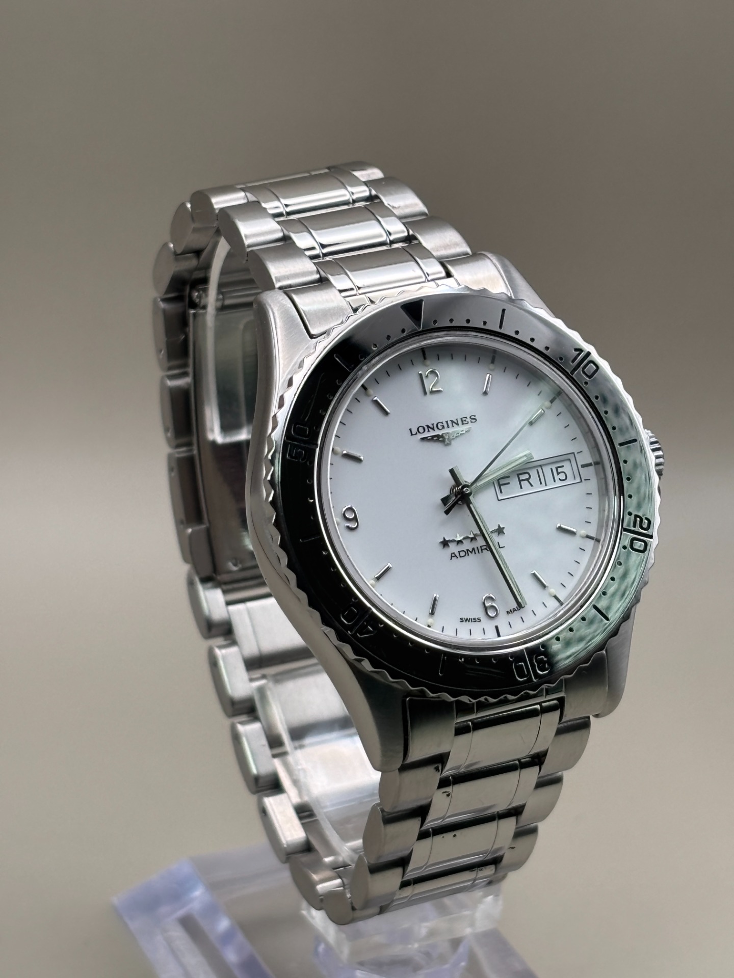 De Longines Admiral 5-Star Diver met referentienummer L3.600.4 is een vintage duikhorloge uit de jaren 90, bekend om zijn robuuste bouw, dag-datum complicatie en het iconische 5-sterrenlogo op de wijzerplaat.
