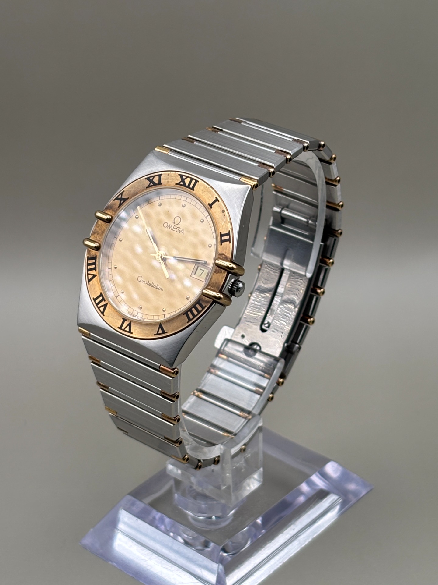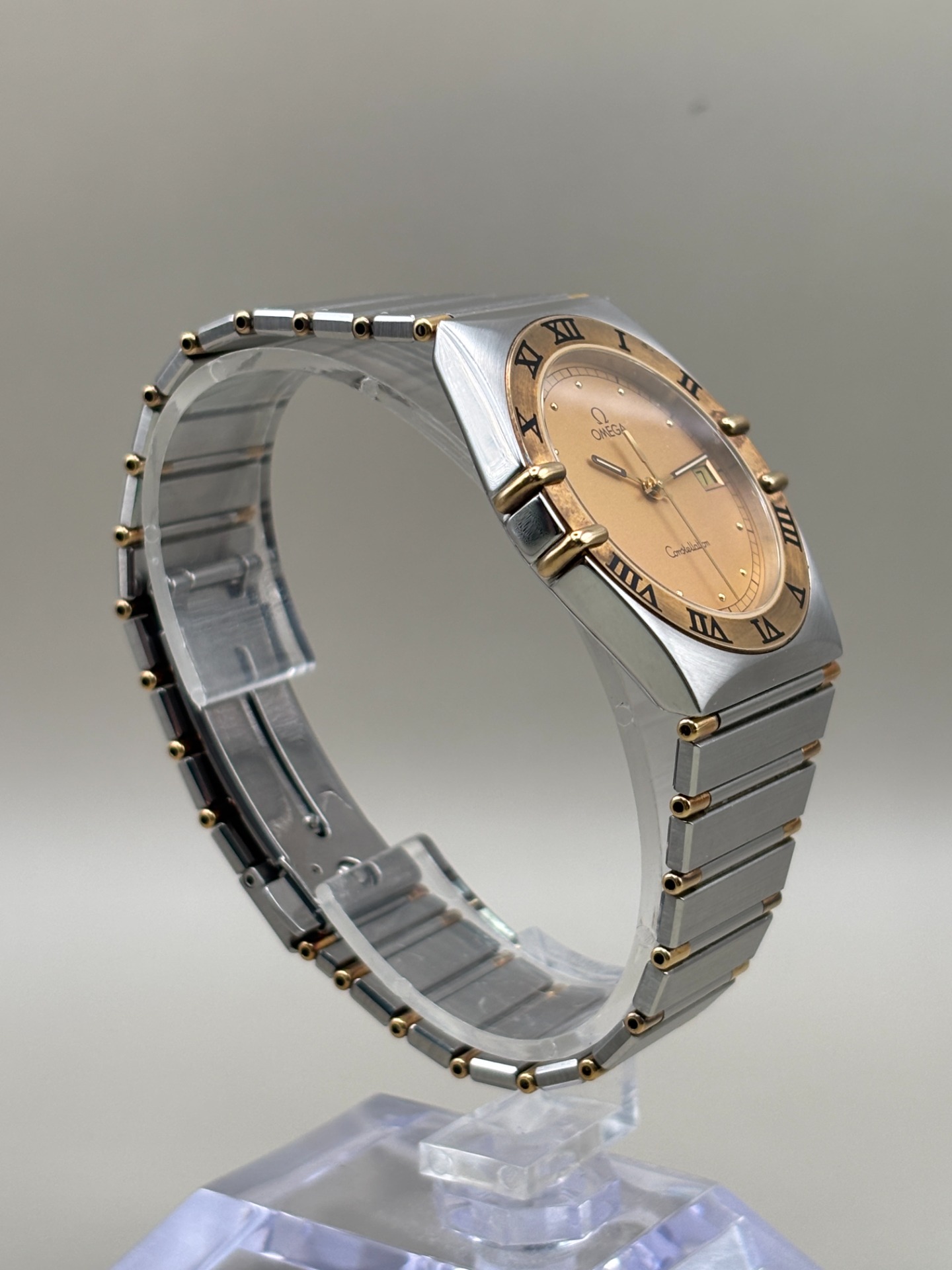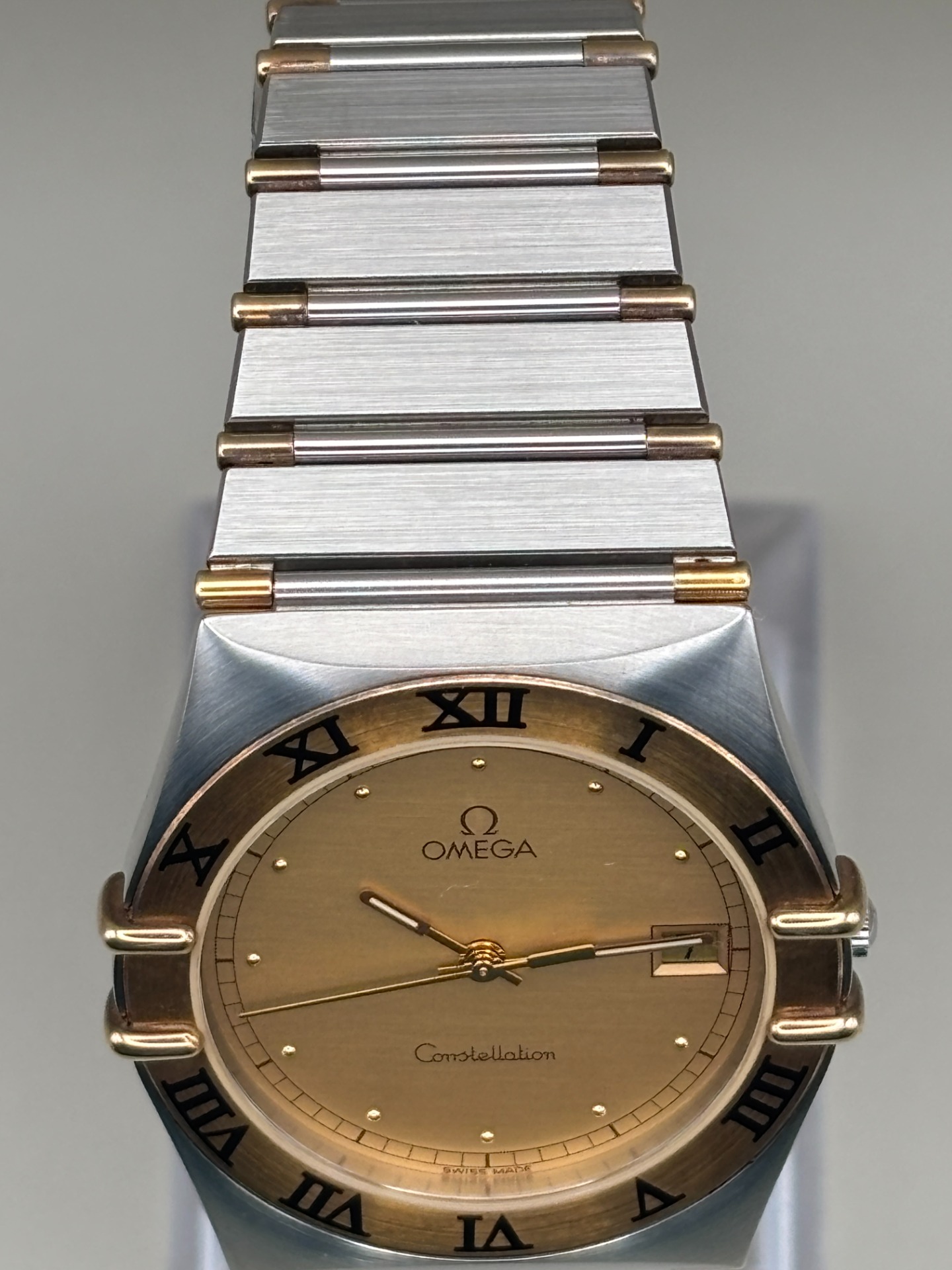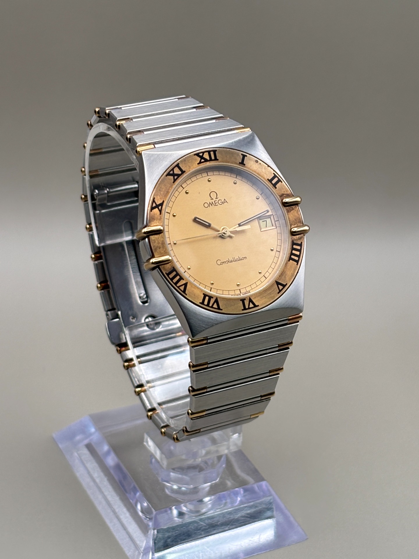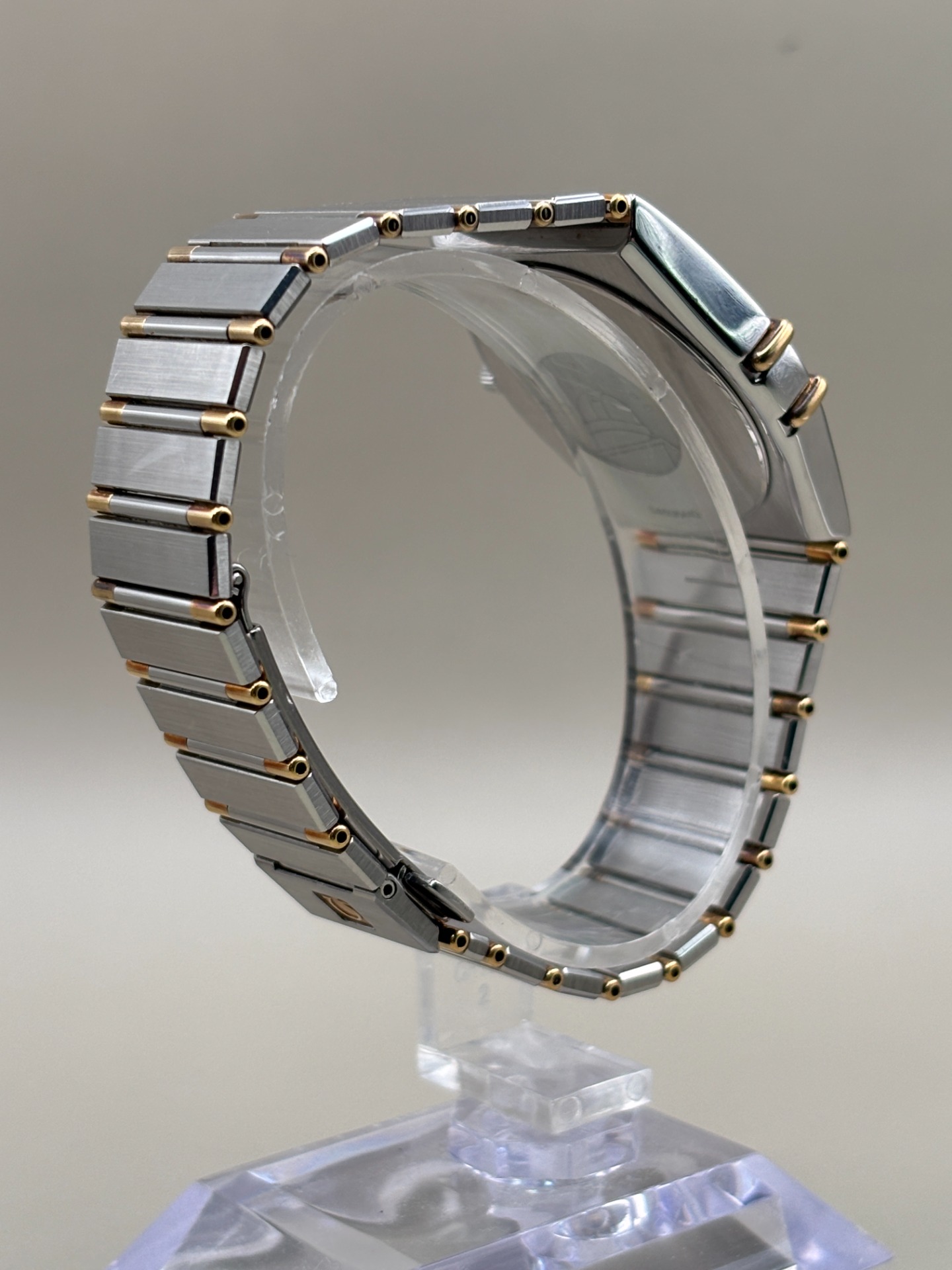 De Omega Constellation Quartz met referentie 396.1070.1 / 396.1080.1 is een verfijnd vintage horloge uit de jaren 1980–1990. Dit model combineert een elegante bicolor kast van 18k geelgoud en staal met een betrouwbare quartz-aandrijving en het kenmerkende Constellation-ontwerp.