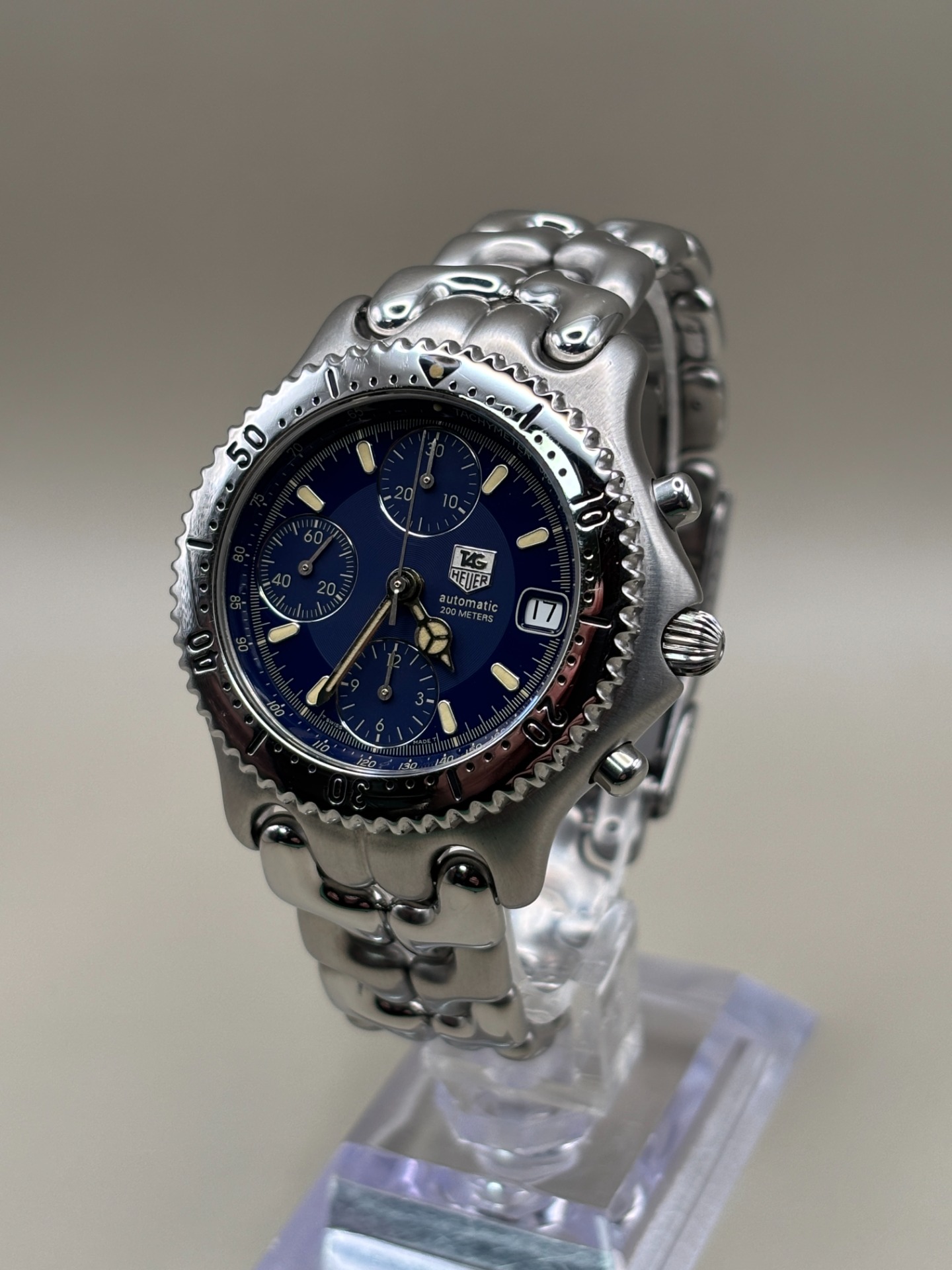 De TAG Heuer CG2111-R0 is een robuust en stijlvol herenhorloge uit de populaire Link-serie van de jaren 1990. Het model combineert een sportieve uitstraling met een betrouwbare automatische chronograaf en is herkenbaar aan de blauwe wijzerplaat en karakteristieke S/el (Sport Elegance) band.