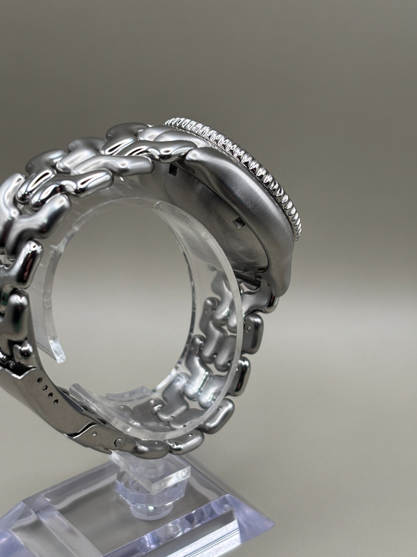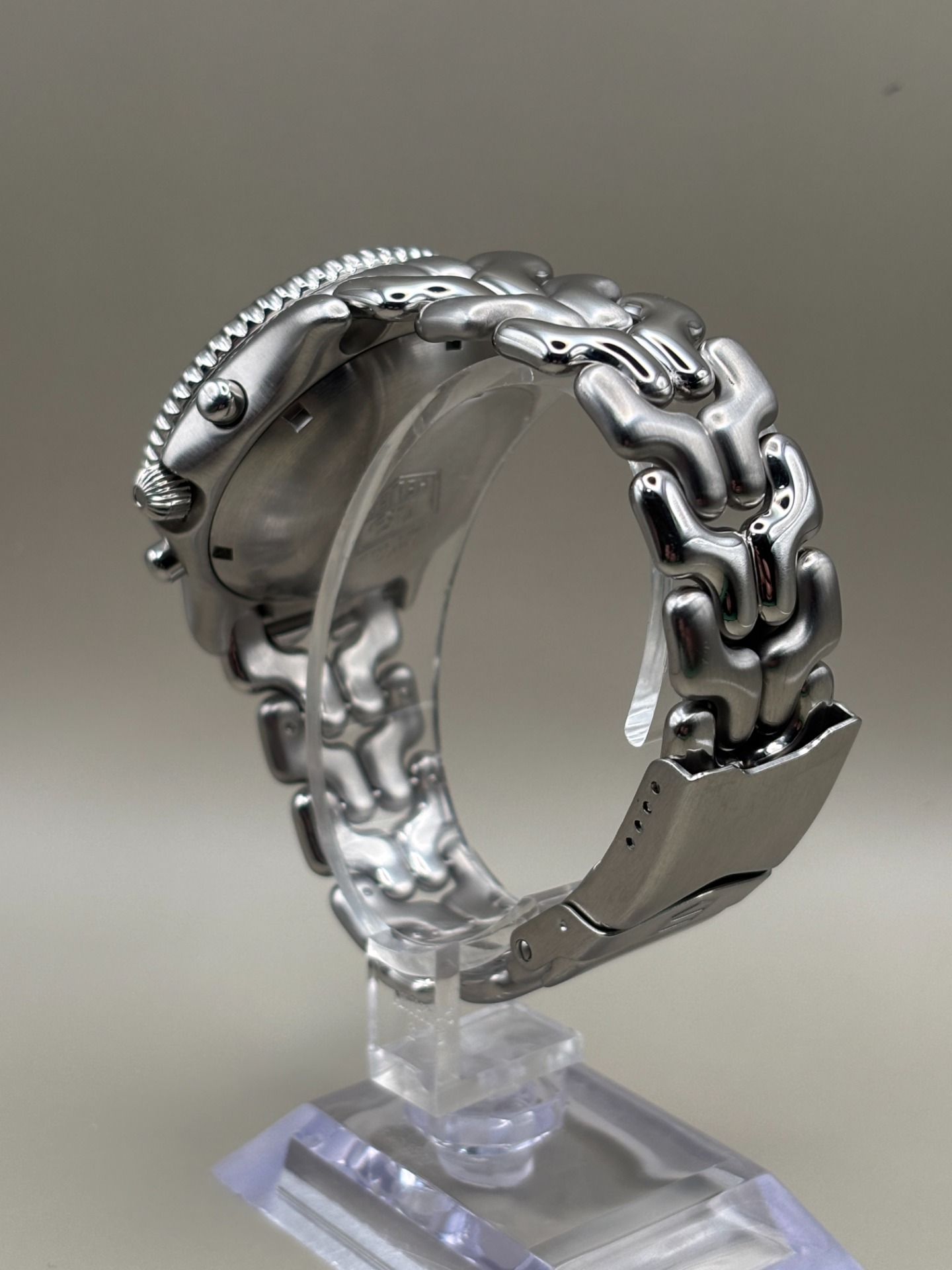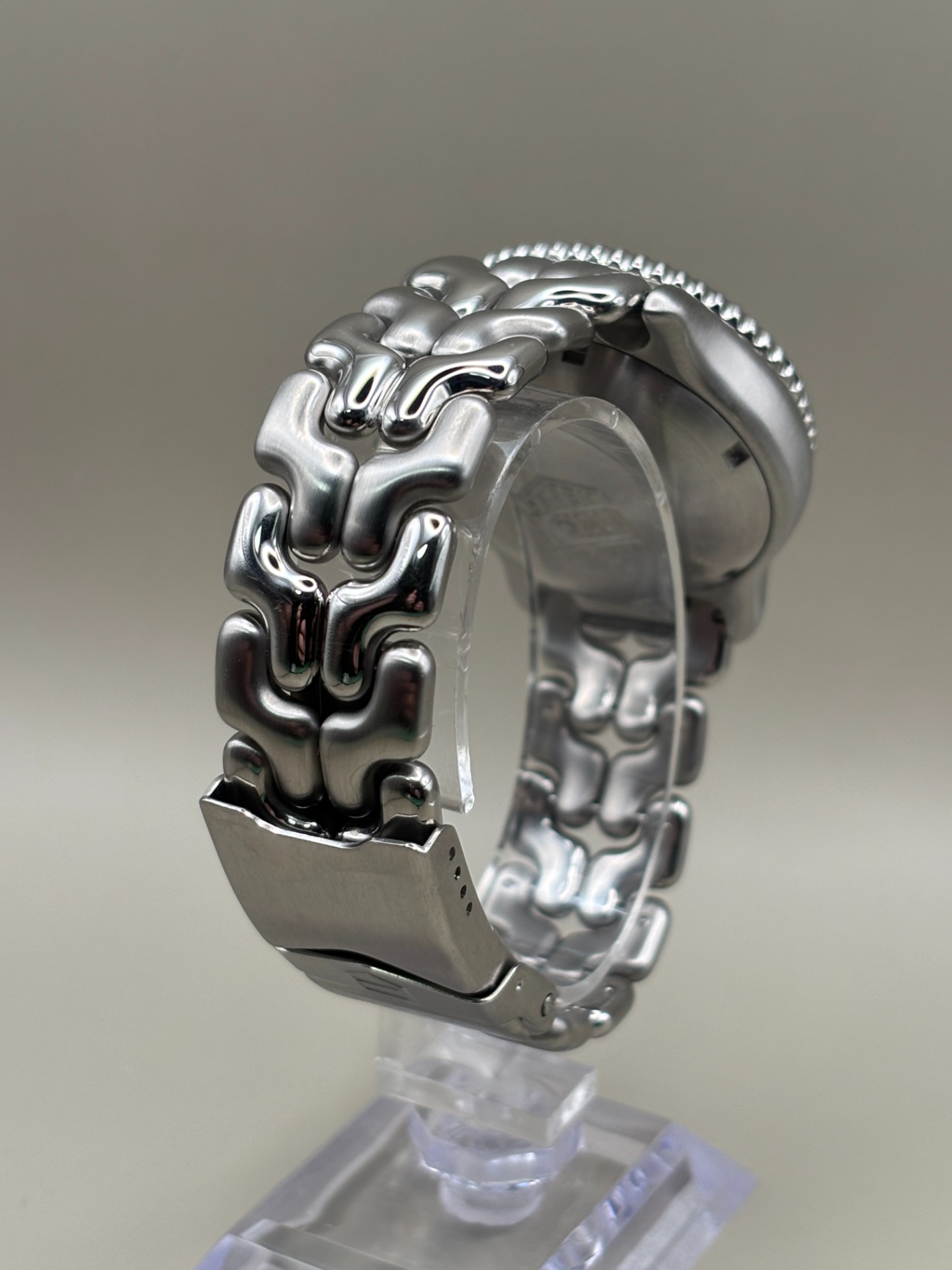 De karakteristieke Link-band heeft lichte rek, wat gebruikelijk is bij dit type band, dat van nature al soepel draagt. Gezien de leeftijd verkeert het horloge in bijzonder mooie staat en is het een uitstekend bewaard gebleven exemplaar en nu dus ook volledig onderhouden.