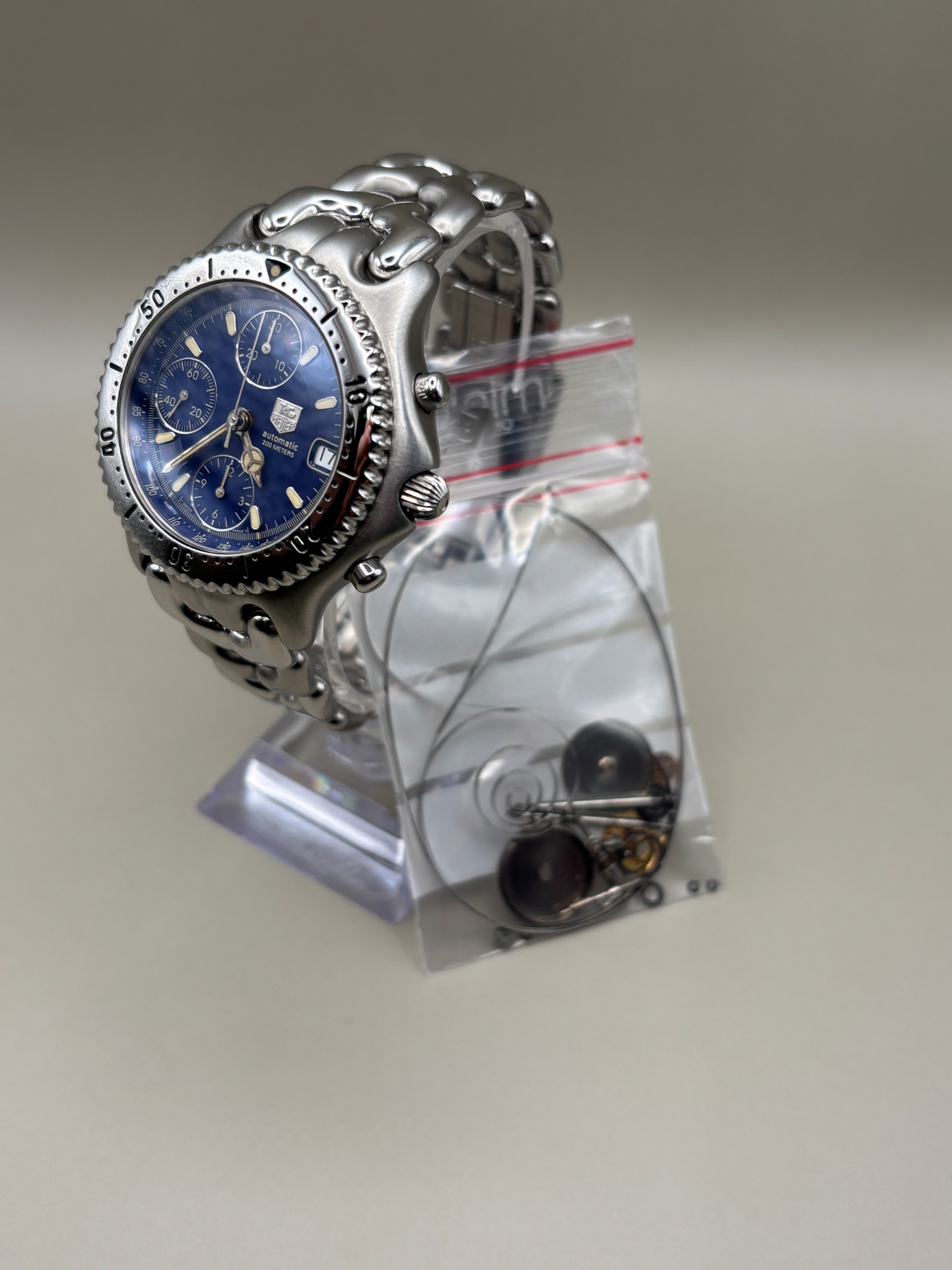 De kast is opgefrist en ultrasoon gereinigd en alle pakkingen zijn vernieuwd. Daarnaast zijn de tube en kroon vervangen, aangezien de originele onderdelen defect waren. Dankzij deze grondige onderhoudsbeurt is het horloge weer klaar voor jarenlang betrouwbaar gebruik en is het succesvol 100m waterdicht getest, uitdraai komt met het horloge.